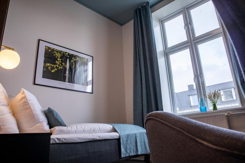 Hotel Phønix Hjørring offers a range of thoughtfully designed rooms to suit every traveler’s needs. Guests can choose from cozy Single Rooms, perfect for solo visitors, or opt for the more spacious Double and Double+ rooms, ideal for couples or small groups. For families or larger parties, the Family Room provides ample space for 2 adults and 2 children, ensuring a comfortable stay for everyone. Business travelers and those seeking a bit more luxury can enjoy the Superior Room or the elegant Suite, both offering generous space and refined comfort.