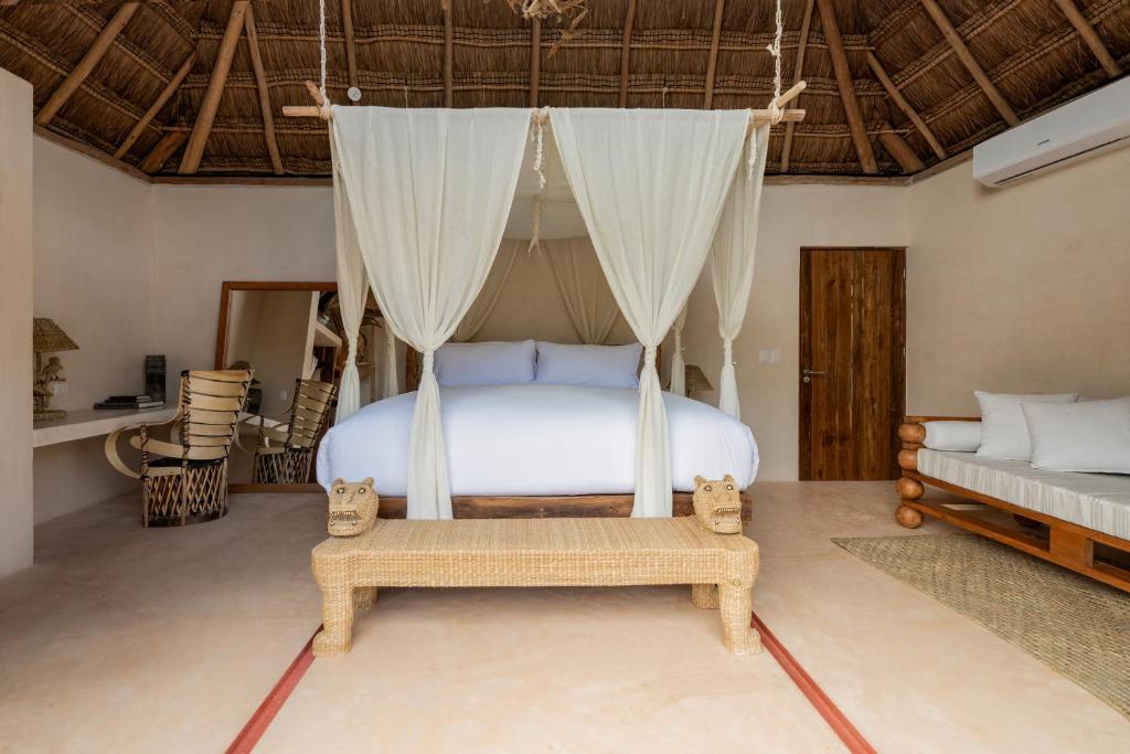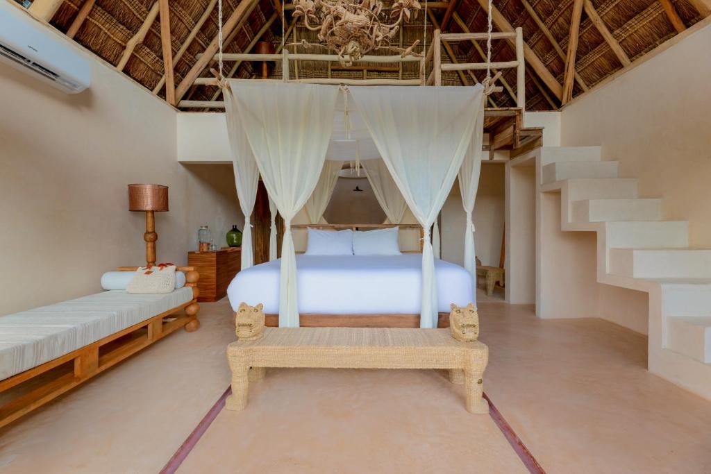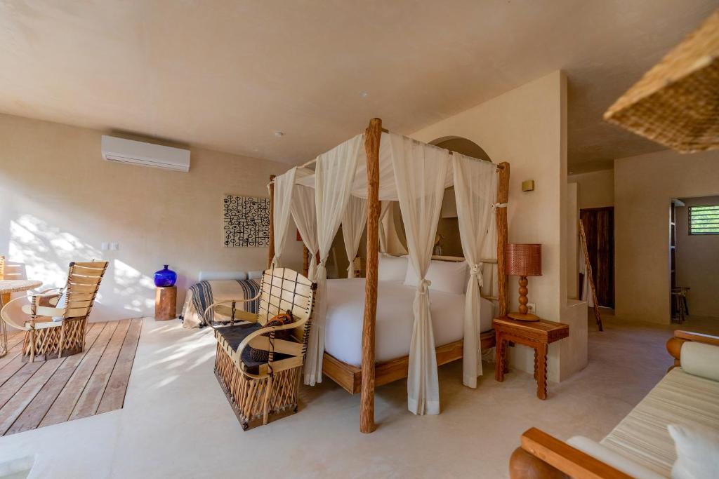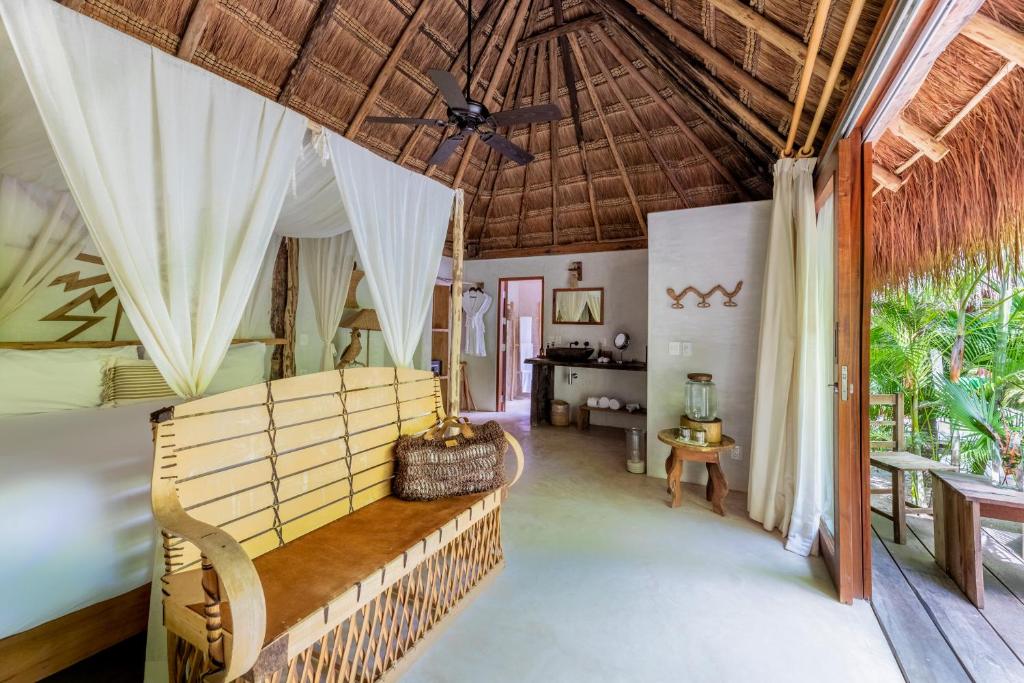 At La Valise Tulum, every detail has been meticulously crafted to ensure a memorable stay. From the moment you step into your room, you'll be greeted by a harmonious fusion of modern design and traditional Mexican influences. Each room boasts luxurious amenities, including plush bedding, a private terrace or balcony, and breathtaking views of the surrounding natural beauty.