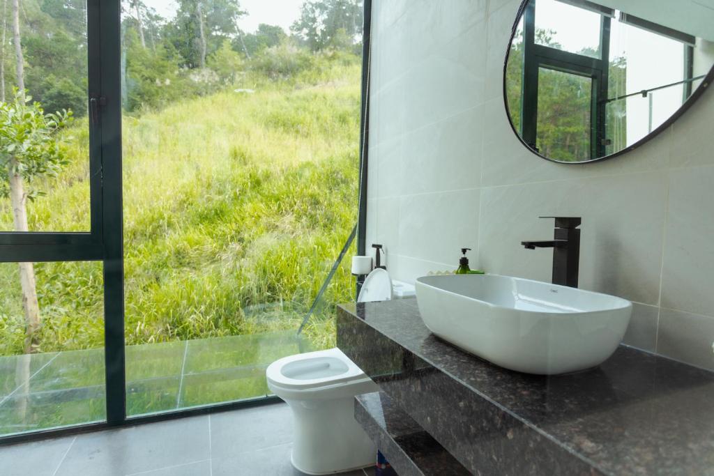 The inviting balcony or terrace offers a serene space to enjoy the breathtaking views of Phuc Yen, perfect for sipping on complimentary bottled water while basking in the gentle breeze. The in-room refrigerator allows you to store snacks and beverages, making it easy to indulge at your leisure. Additionally, cozy bathrobes await you for that extra touch of luxury, ensuring that your stay at FLAMINGOS Villa Happy BT is nothing short of exceptional.
